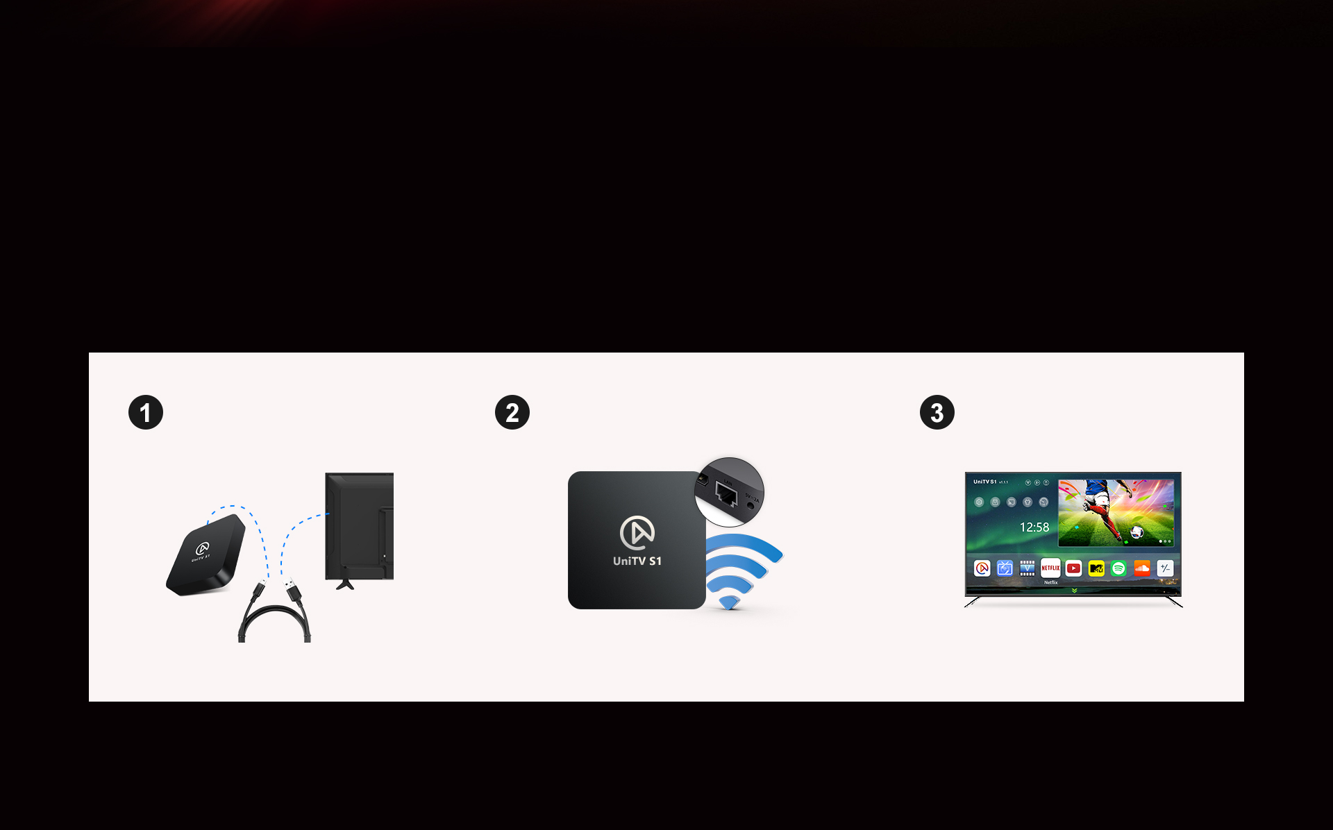 Conecte a tv box à porta HDMI da TV pelo cabo HDMI (incluído na box)